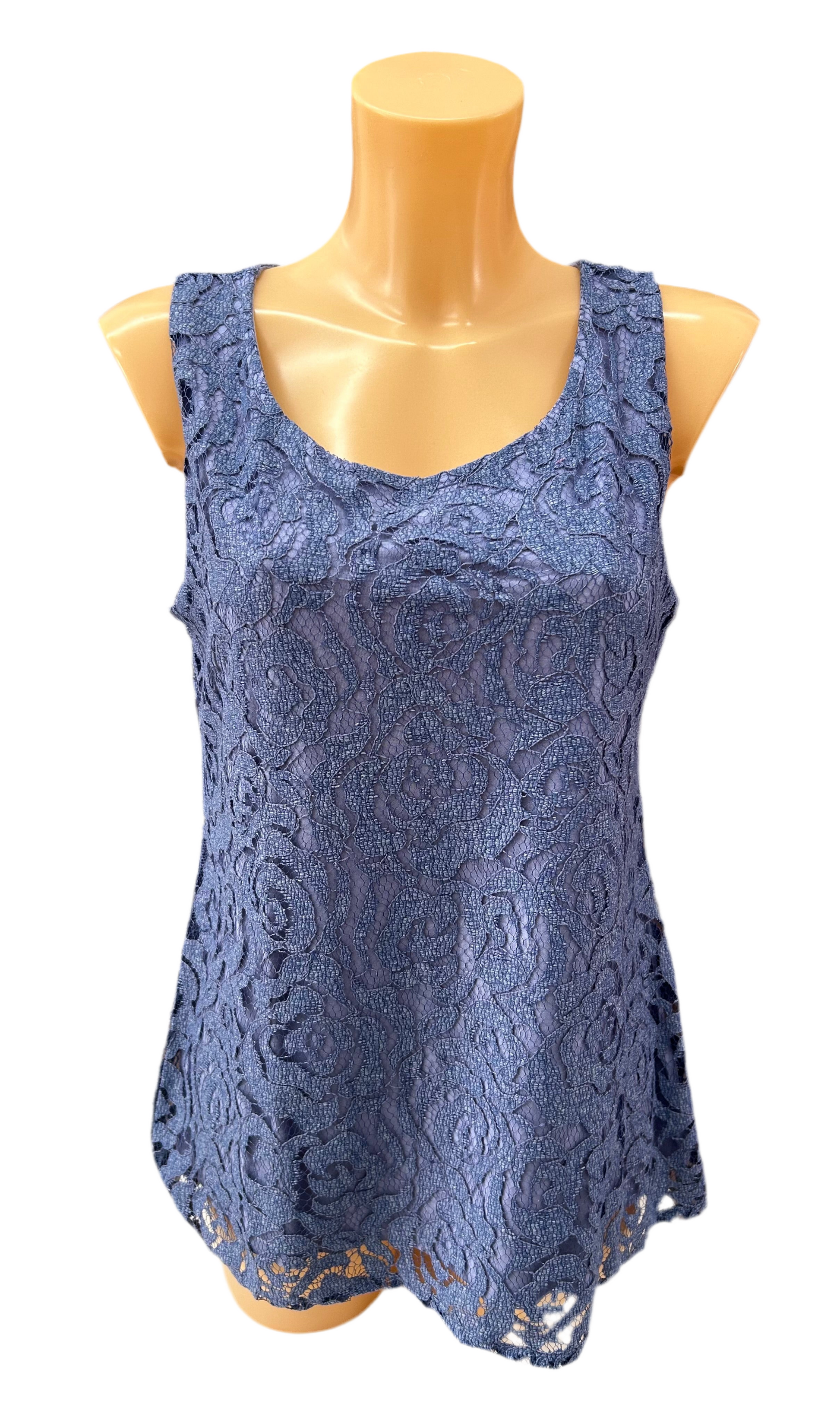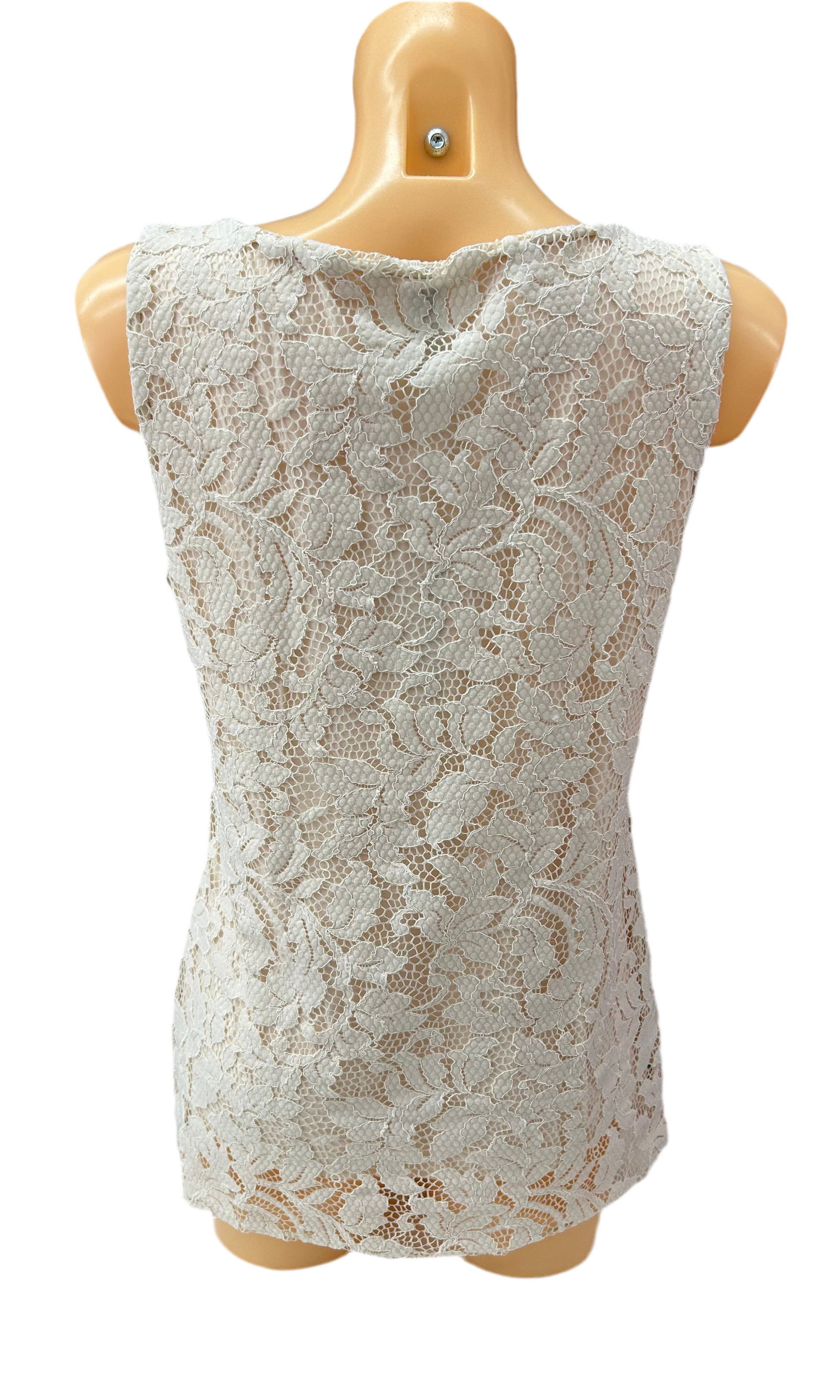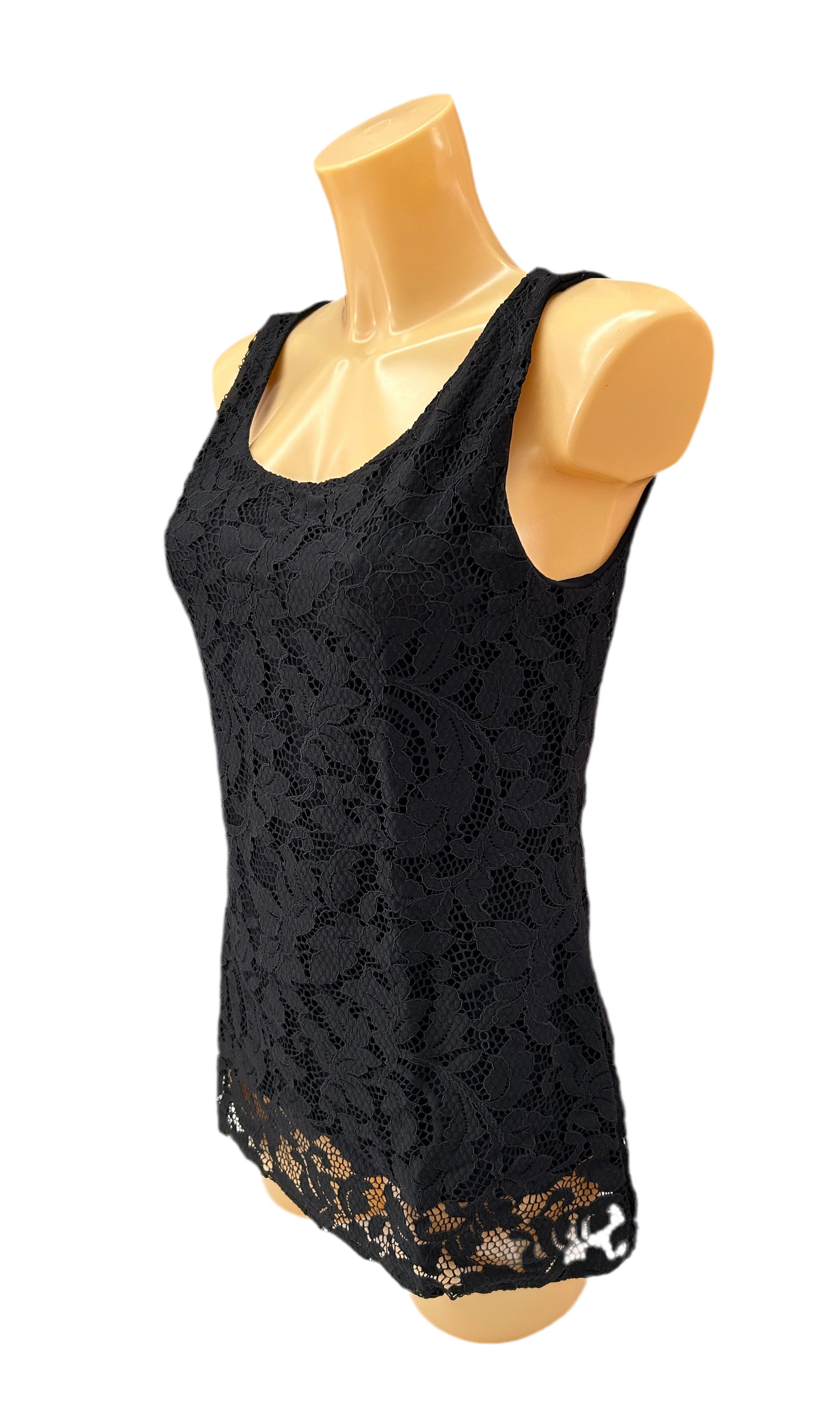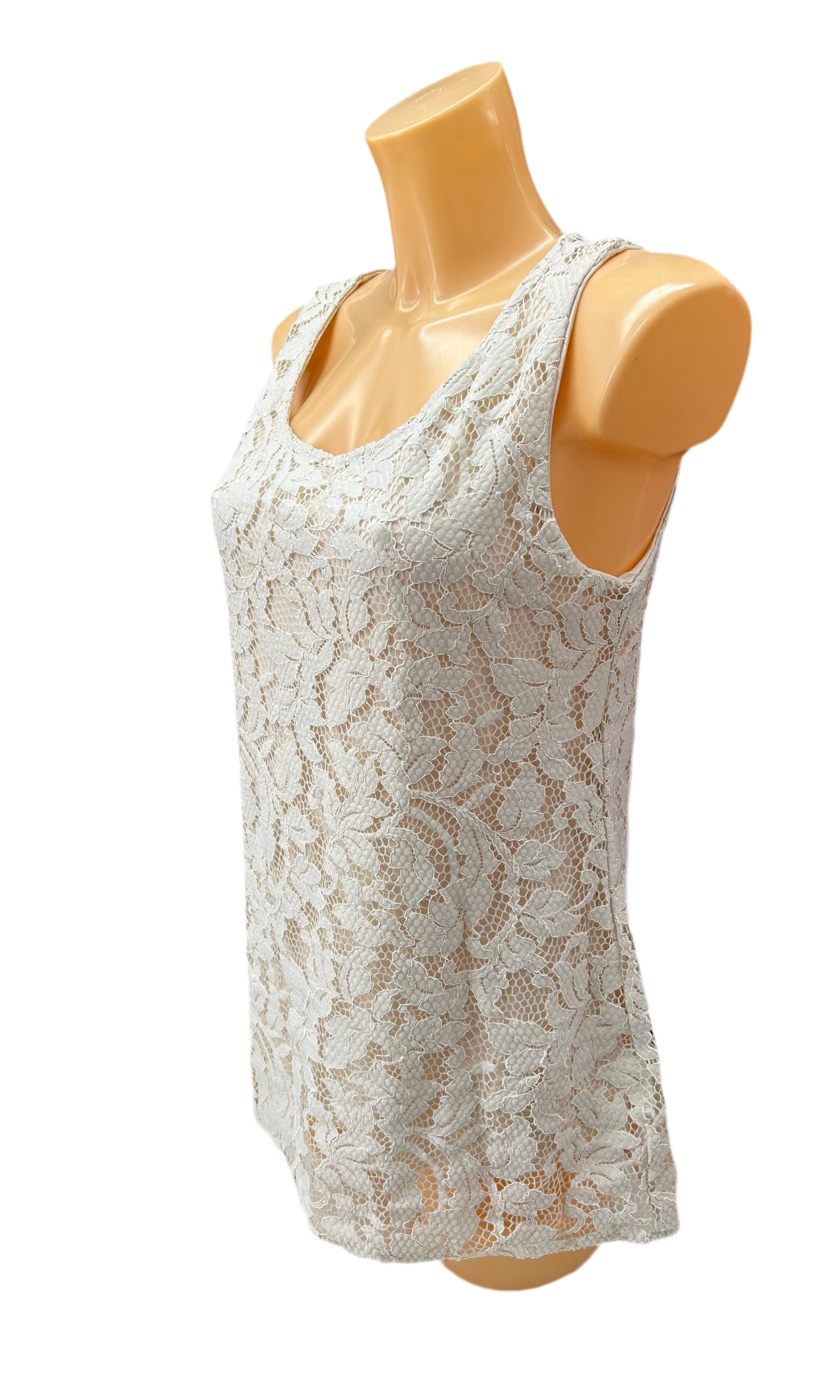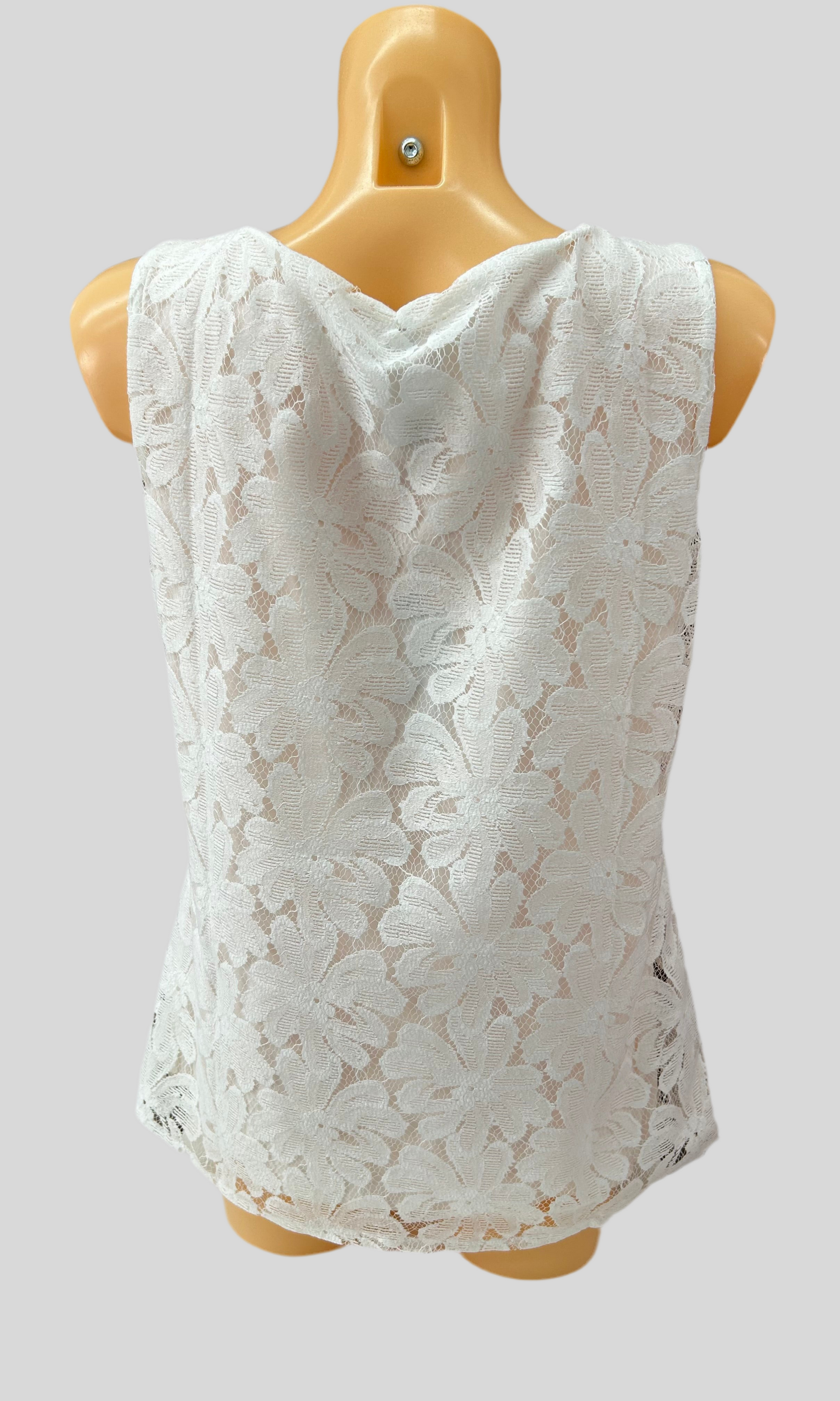 004093099 BISBIGLI : Sottogiacca girocollo, canotta spalla larga a due strati : esterno in pizzo ricamato 100% poliestere e interno fodera in tinta unita taglio laser su fondo 92%viscosa - 8% Elastan. Disponibile in 4 varianti colore : BIANCO OTTICO, NERO, GLICINE, PANNA.