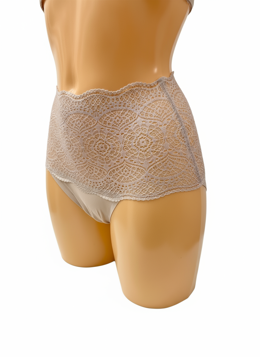 FL2330 - FANTASIE : Renditi seducente con lo slip a vita alta lace easy. Vestibilità perfetta in TAGLIA UNICA. Questo capo veste dalla taglia XS alla XL grazie al tessuto in pizzo elasticizzato e la vita alta modellante. Indossa il tuo slip come una seconda pelle per un look elegante e confortevole tutto il giorno. Parte alta ricamata e base in tessuto stretch con tassello in cotone. Disponibile in due varianti colore : NUDO e NERO.