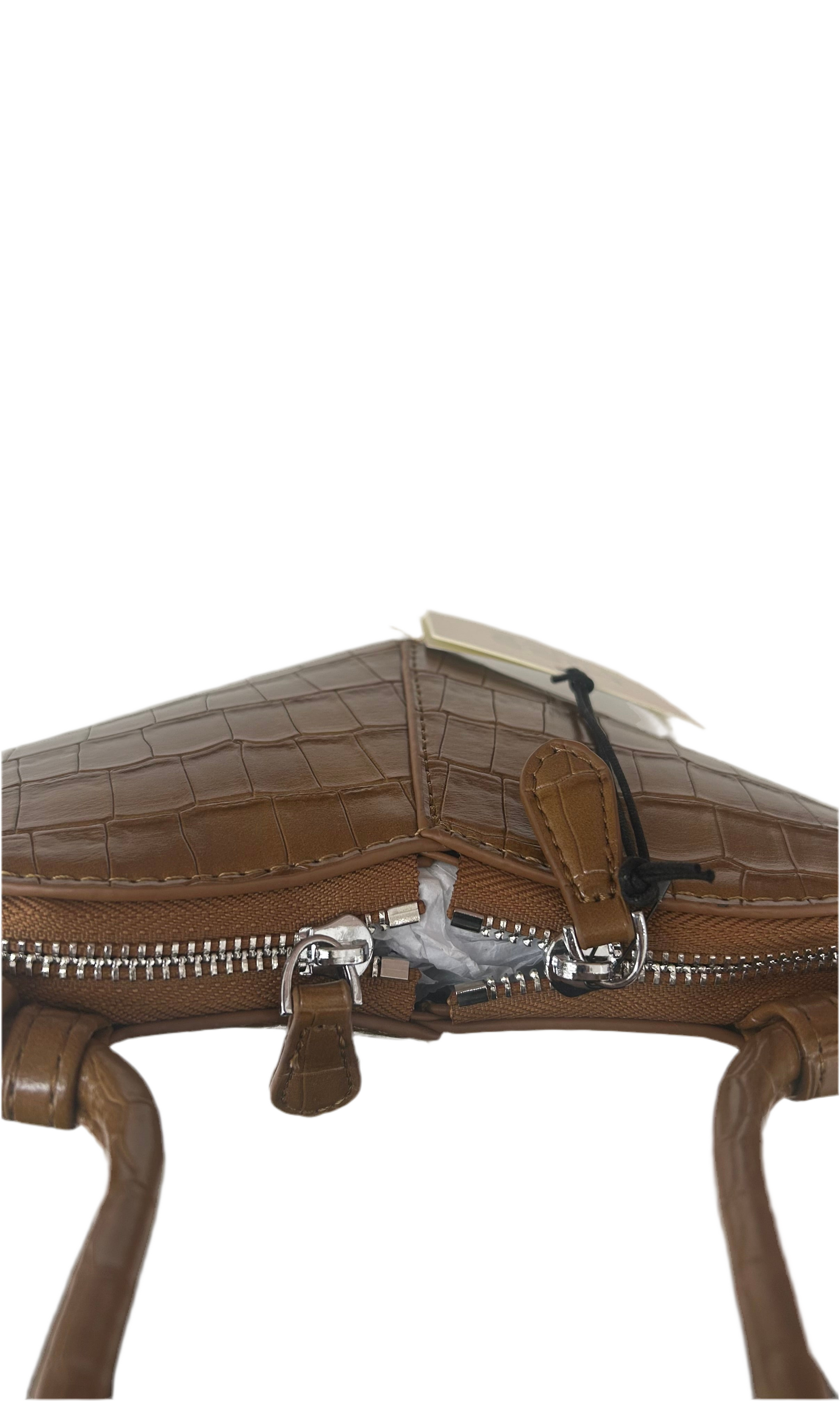 25MA5323 MISSLOVE : Borsetta accessorio tinta unita in ecopelle, effetto coccodrillo, forma a cuore. Manici intrecciati e doppia chiusura con sia lato superiore. Dimensione 20x22 disponibile formato unico in due varianti colore: CUOIO e BEIGE.