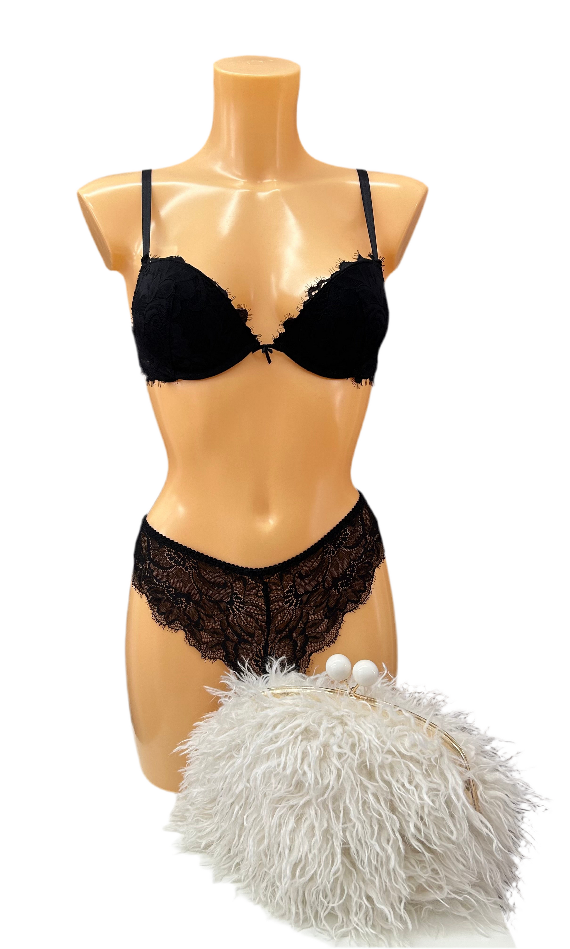 25MA27435 MISSLOVE : Clutch in pelliccia con chiusura metallica in bordatura dorata e clips sferiche. Disponibile variante colore unica : BIANCO.