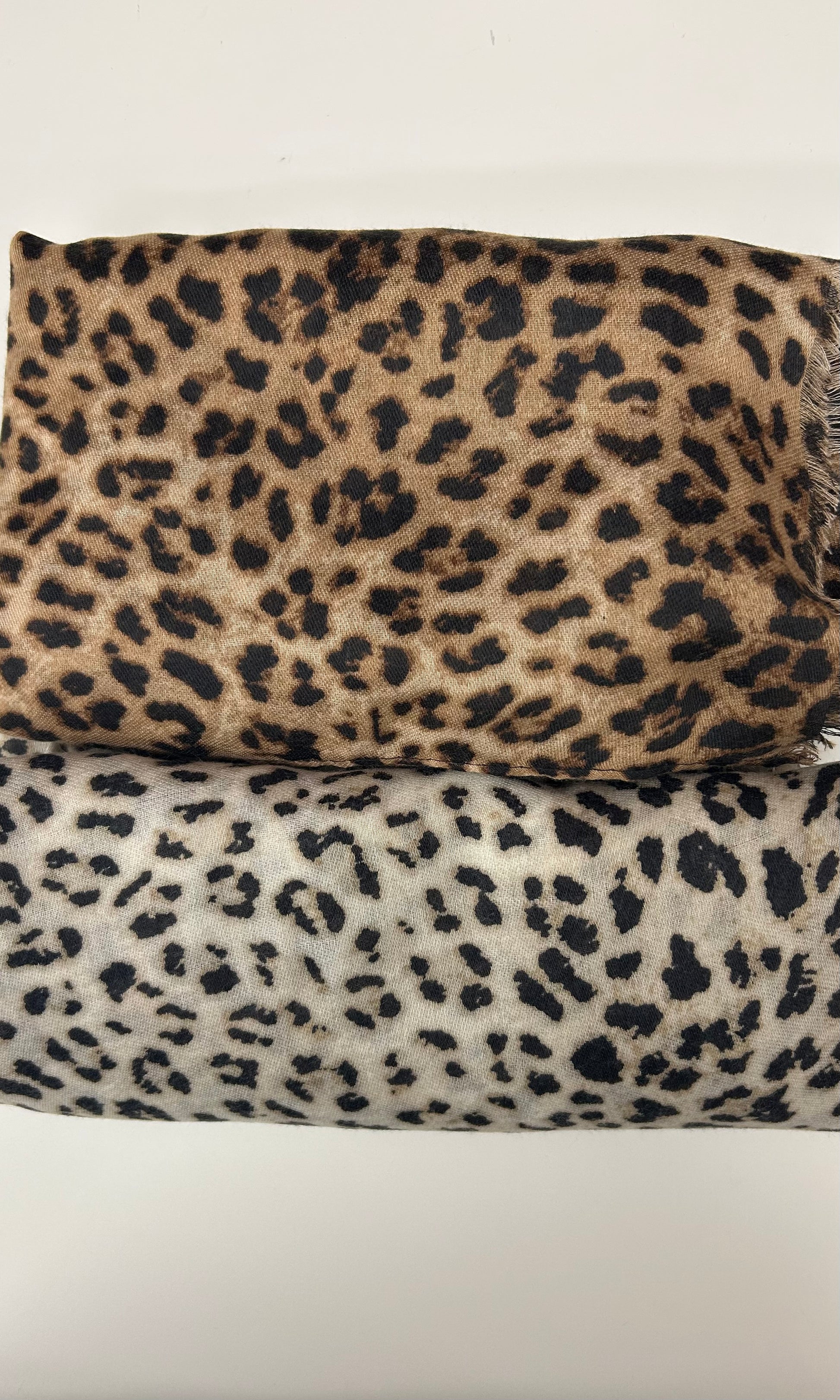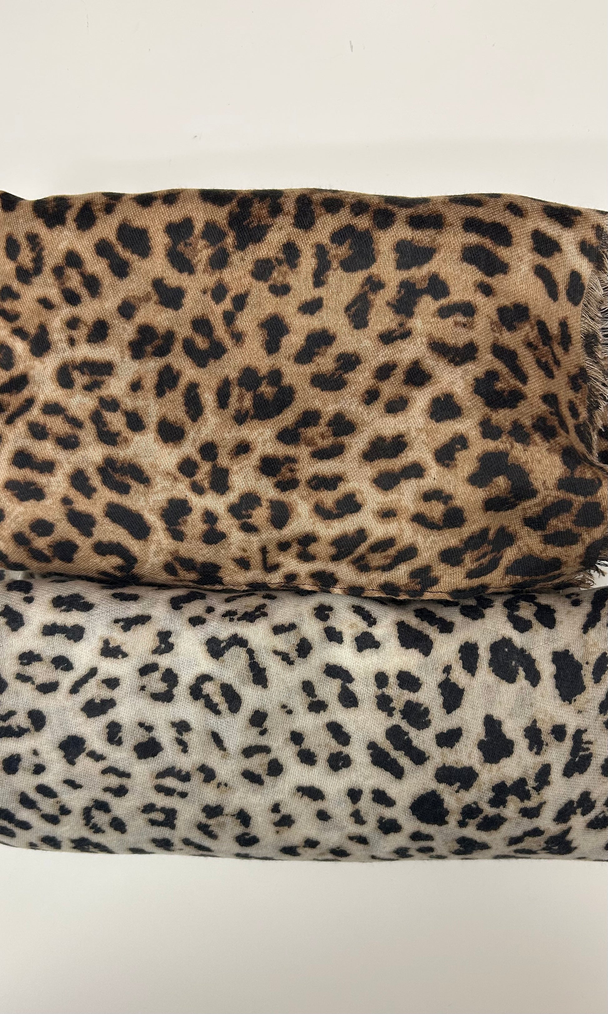 25MAFANT MISSLOVE: Pashmina stampa allover fantasia animalier dimensione standard rettangolare. Disponibile in due varianti colore : CAMMELLO e PANNA.