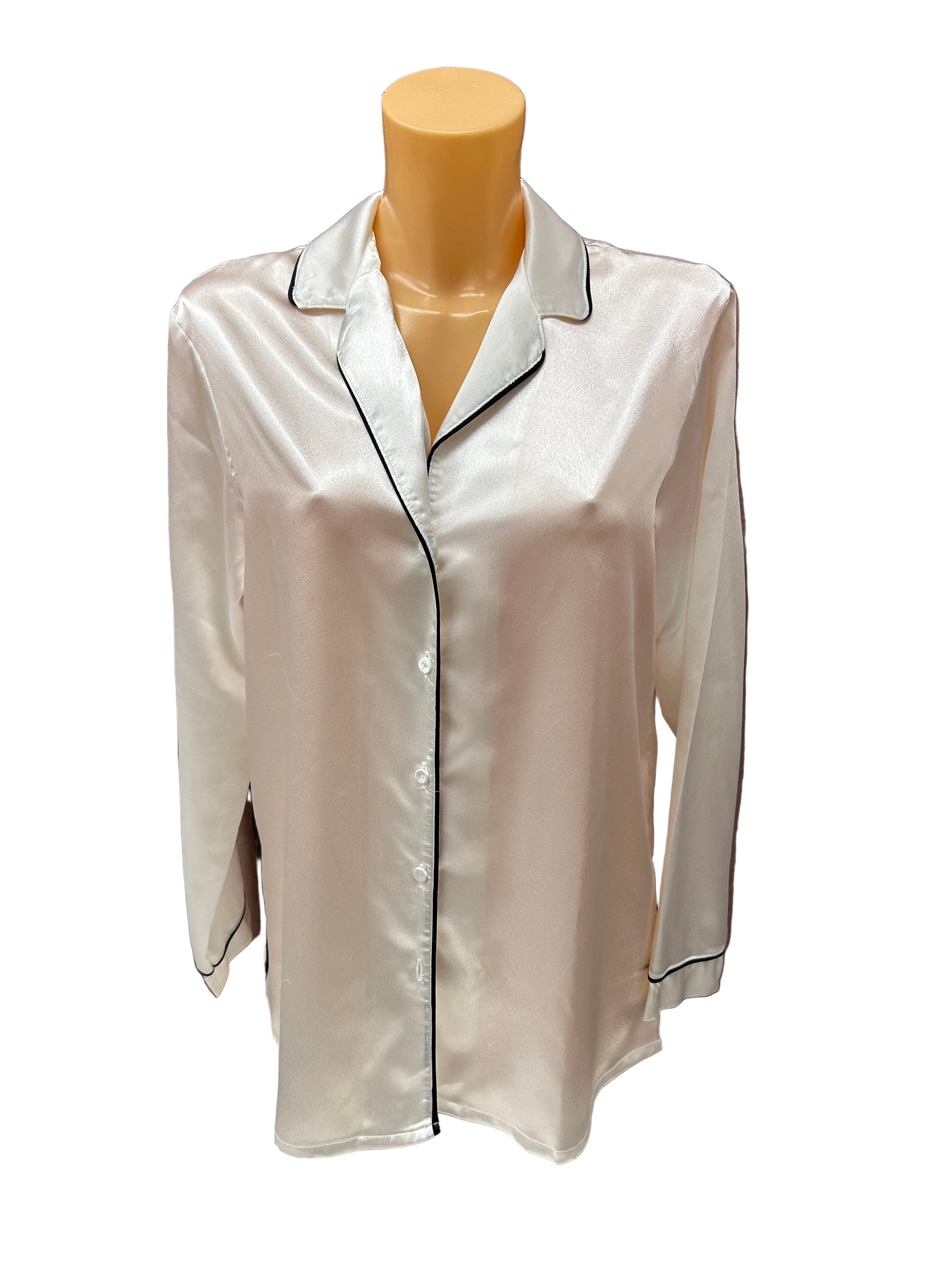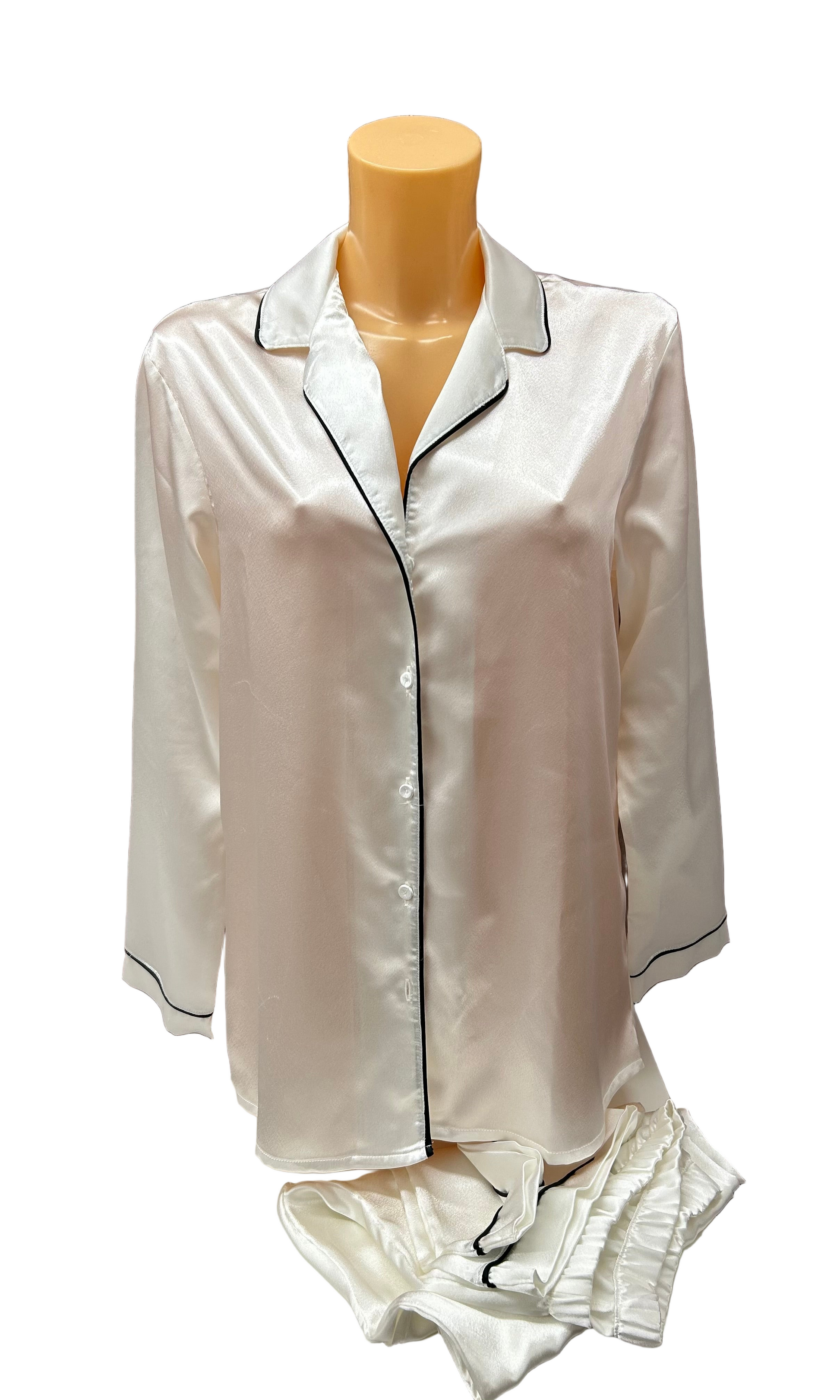 8334 ANDRÀ LINGERIE: Pigiama in raso setificato modello tipo uomo aperto con rifinitura a contrasto. Disponibile variante colore unica : SETA.