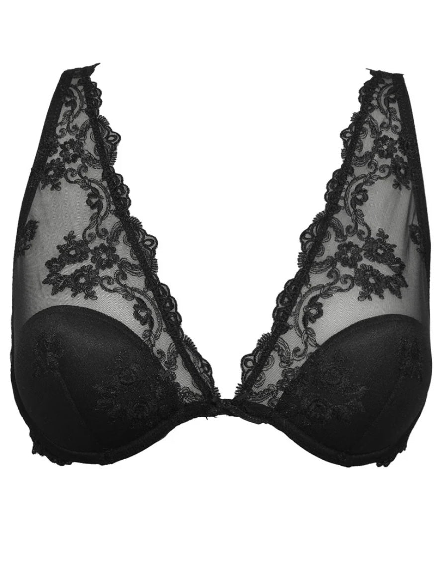 1958 SIELEI : ..di assoluta tendenza la bralette con ferretto e coppe imbottite, interamente realizzata in seducente tulle stretch dal prezioso motivo floreale. Spalline regolabili e fiocchetto in centroseno ton sur ton. Disponibile in due varianti colore: BIANCO LATTE e NERO.