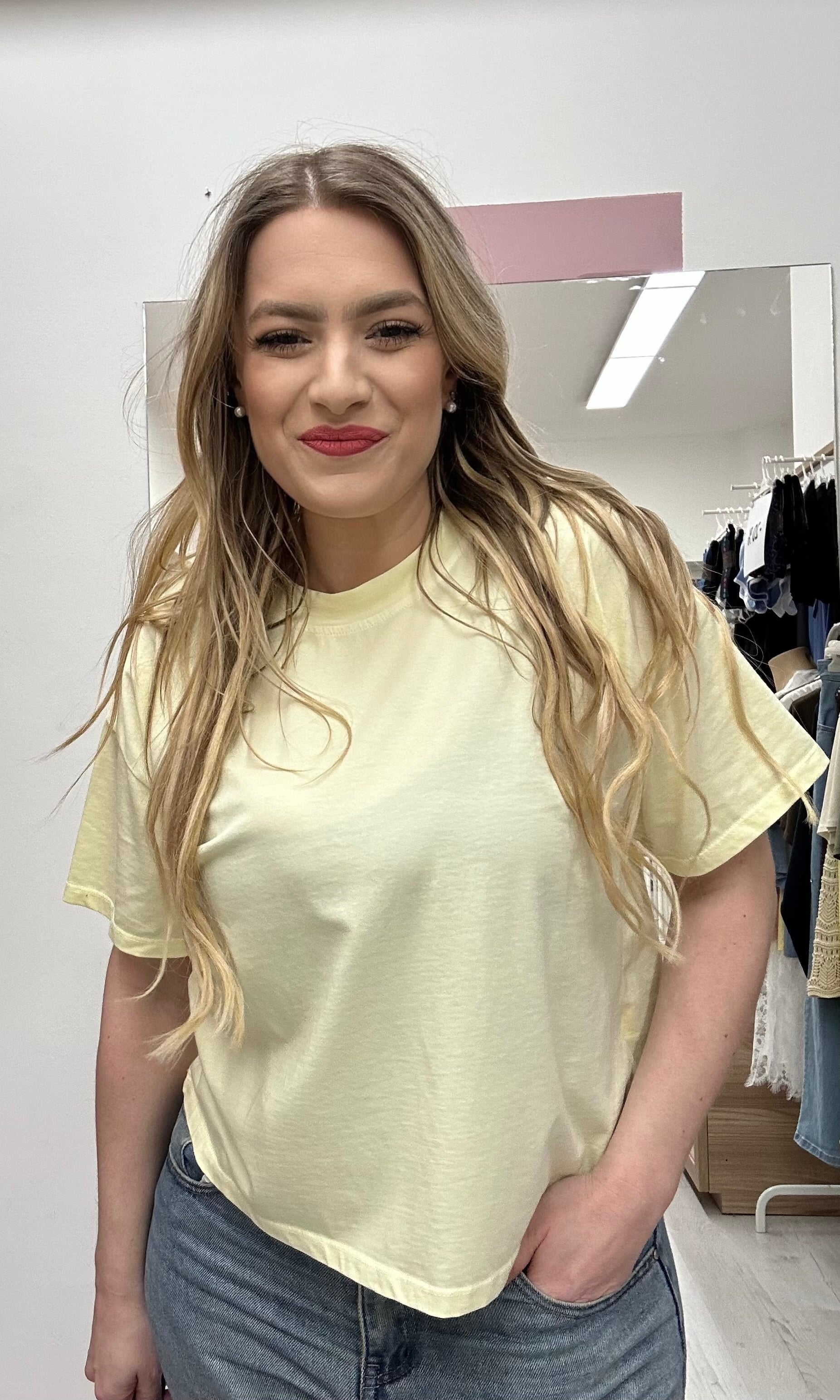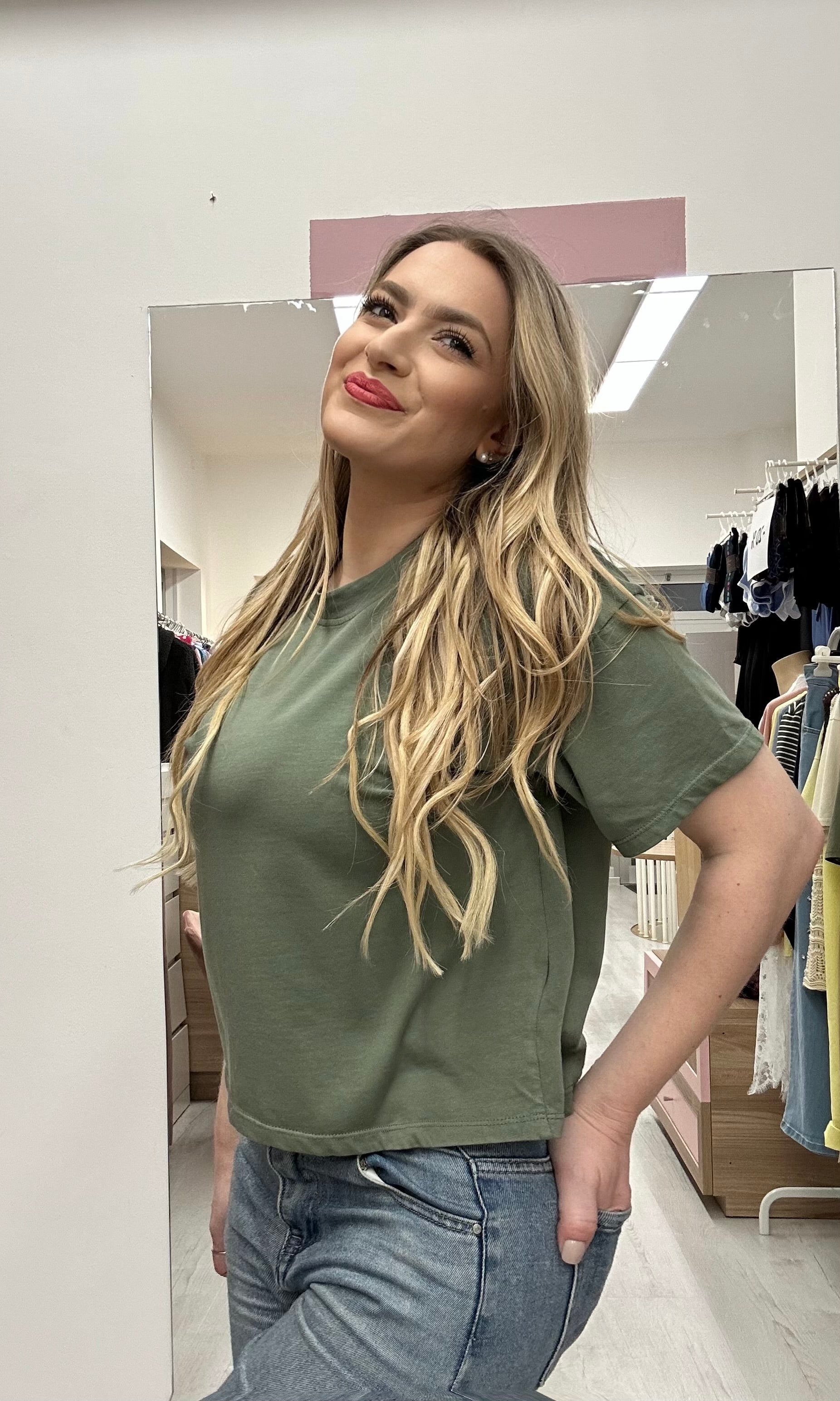 2693 SUSYMIX: La T-shirt girocollo a manica corta SUSYMIX è realizzata con una composizione di 95% cotone e 5% elastan, garantendo comfort e traspirabilità. Il tessuto elastico offre una vestibilità migliorata, permettendo una libertà di movimento del 100%. La vestibilita’ e’ a scatola modello over. Questa T-shirt è ideale per l'uso quotidiano e per attività sportive. Disponibile in 4 varianti colore: VERDE SALVIA, JEANS, GIALLO, COCCIO in taglia unica.