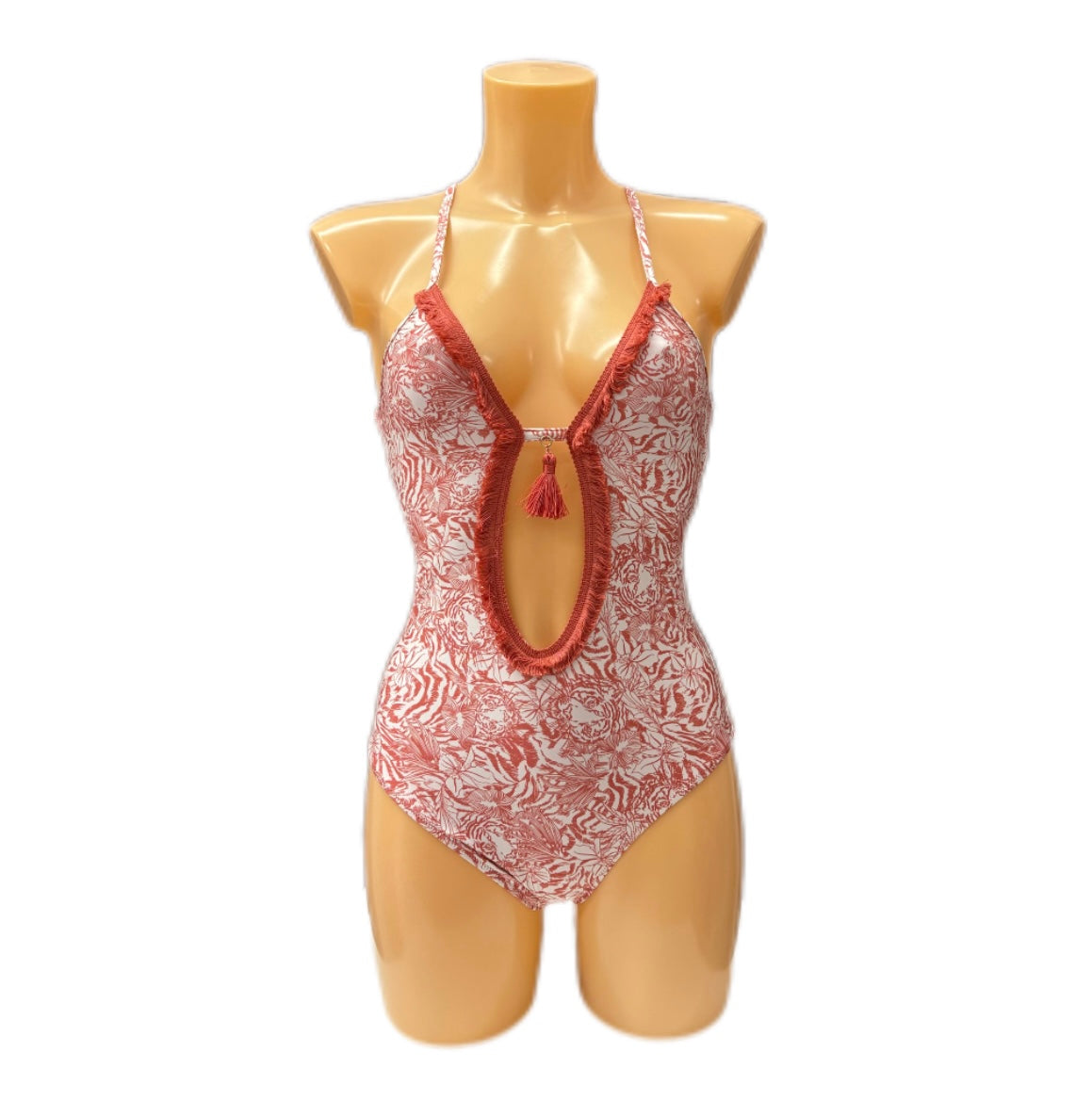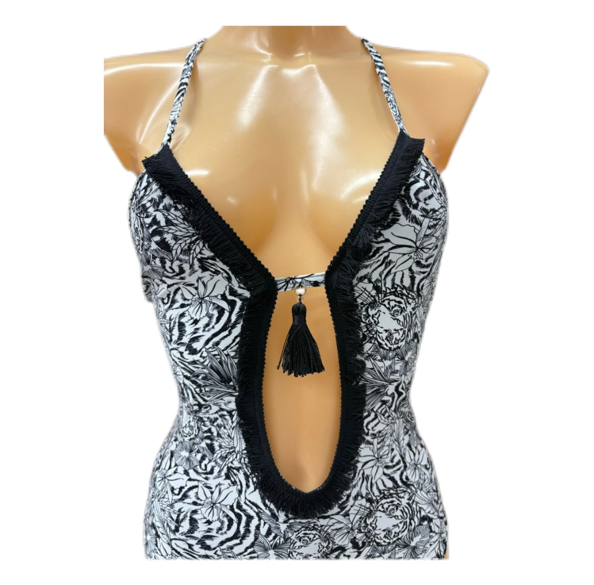 S3SMN50 VERDISSIMA : costume intero, senza coppa, con sagomatura linea V a goccia sul centro davanti del décolleté. Profondità scollo sagomatura cm 17, unito nel centro davanti e ricoperto da passamaneria in nappa tinta unita. Pendaglio centrale in accessorio tinto filo. Bretella fina con incrocio sul centro dietro per allacciatura. Vestibilita’ slim stile olimpionico.